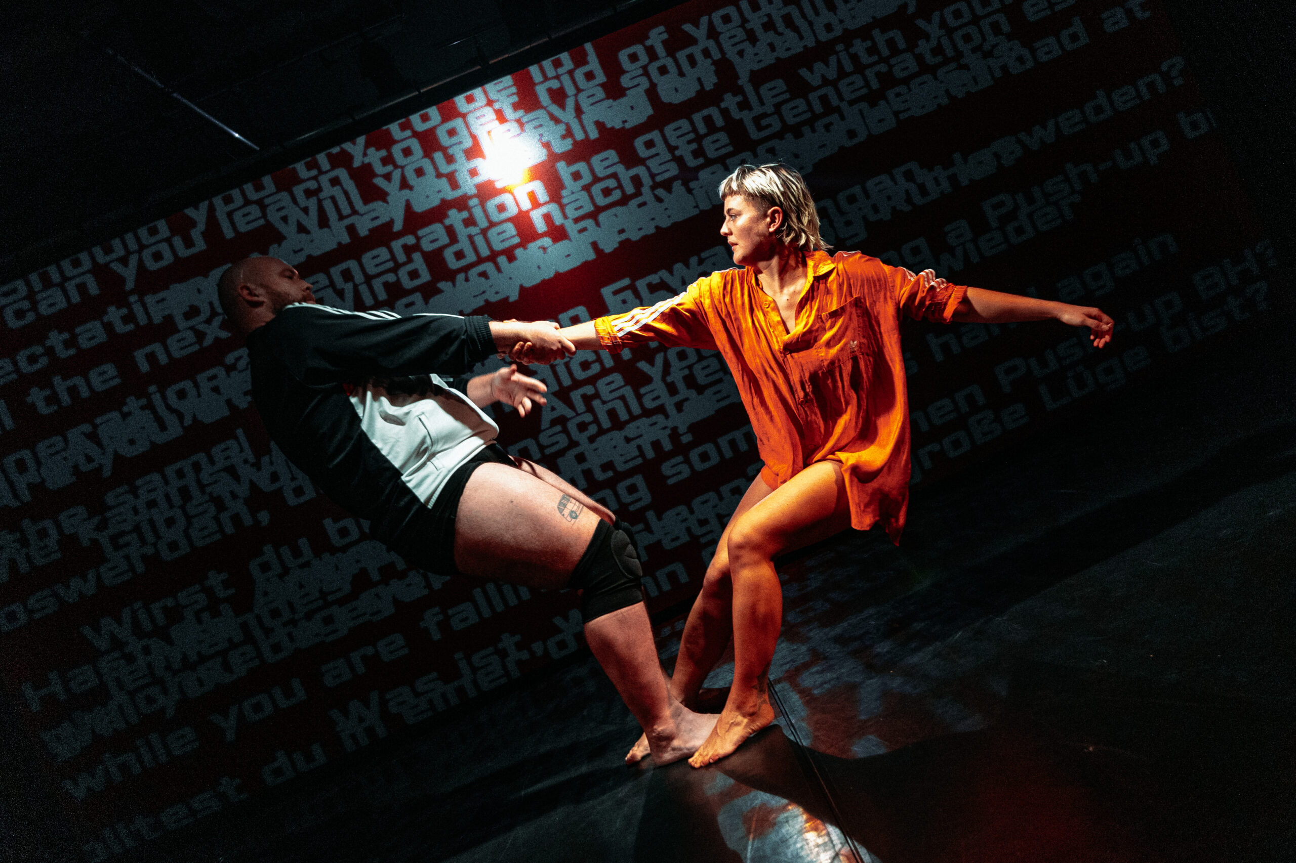 In a relentless and challenging pas de deux, dancers Dmitrijus Andrušanecas and Hanna Held seek an intense physical connection with each other. They surrender themselves to the other, challenge their counterpart, and resolutely explore what it means to be fear:less.